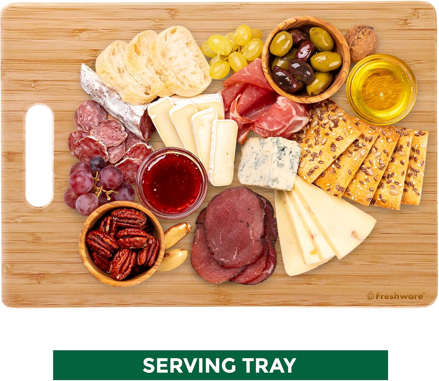 - Unique Craftsmanship Cutting Board Set in 3 Sizes: Freshware has cleverly designed these boards to satisfy even the most demanding chef needs. The top and bottom of the cutting boards are vertical whereas the middle section is horizontal. We built them that way so as to add extra strength to the cutting board. Choose between the large 13 x 9.5 x 3/8 " (33 x 24.1 x 1 cm), medium 11 x 8.5 x 3/8 " (27.9 x 21.6 x 1 cm) or small 8 x 6 x 3/8 " (20.3 x 15.2 x 1 cm).