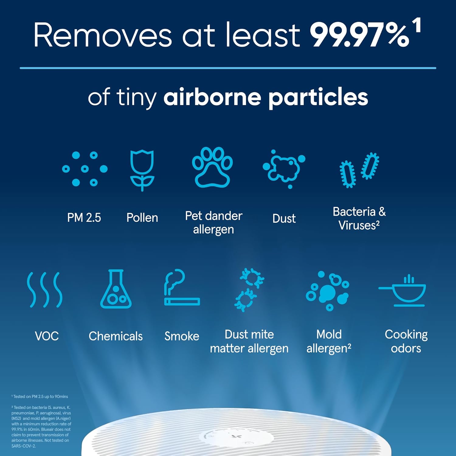 - LET’S CLEAR THE AIR SMARTER: Blueair smart air purifier app scheduling, air quality monitoring, Clean Air ETA, Welcome Home geofencing and RealTrack accurate 6–9 month filter tracking technology are customizable features; Alexa voice control available