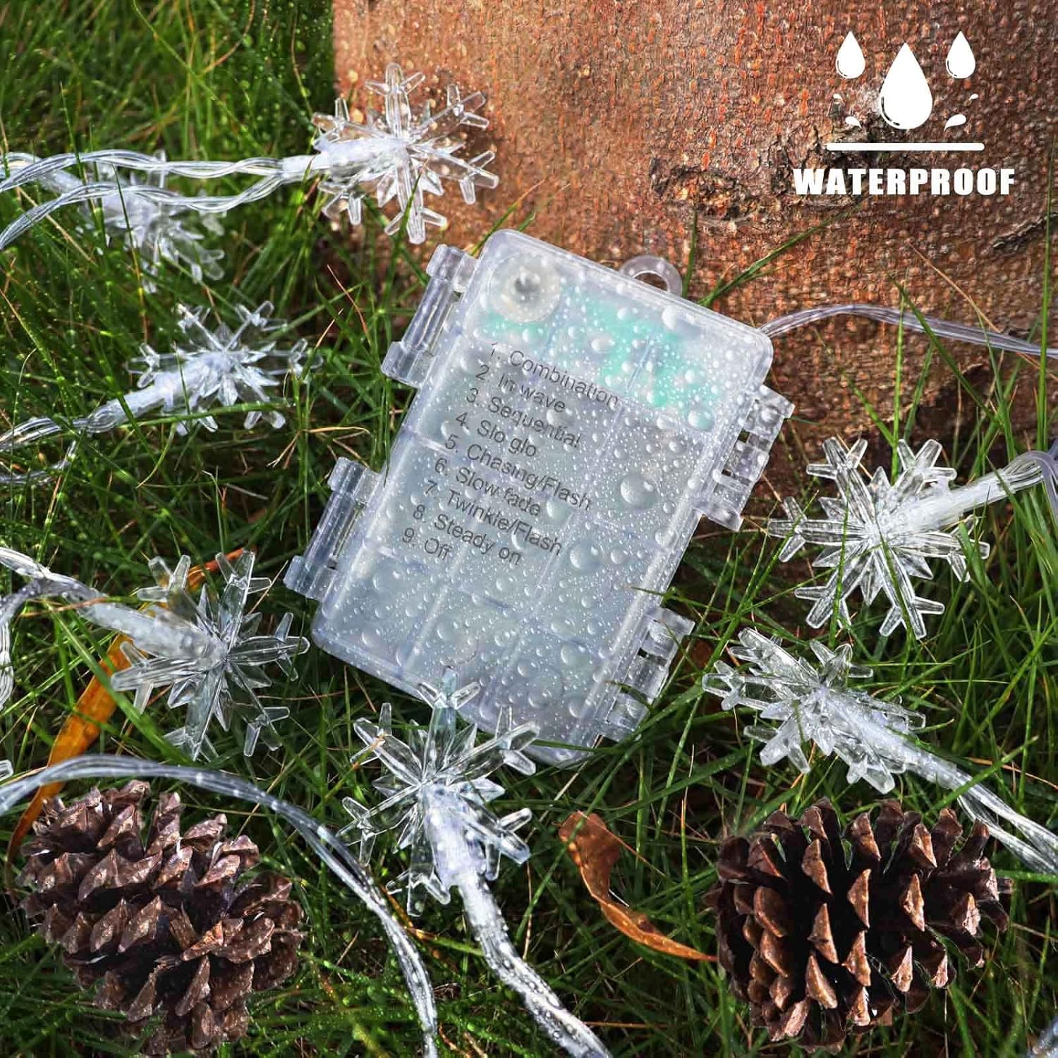 Christmas Snowflake String Lights, 20 FT 40 LED Warm White Battery Operated Fairy Lights with Remote Timer - Bedroom Room Indoor Xmas Tree Decorations