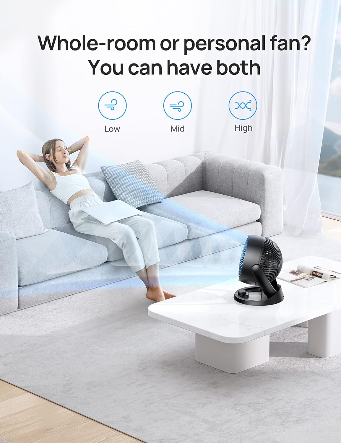 Dreo Fan for Bedroom, 12 Inches, 70ft Powerful Airflow, 28db Quiet Table Air Circulator Fans for Whole Room, 120° Adjustable Tilt, 3 Speeds, Desktop Fan for Home, Office, Kitchen