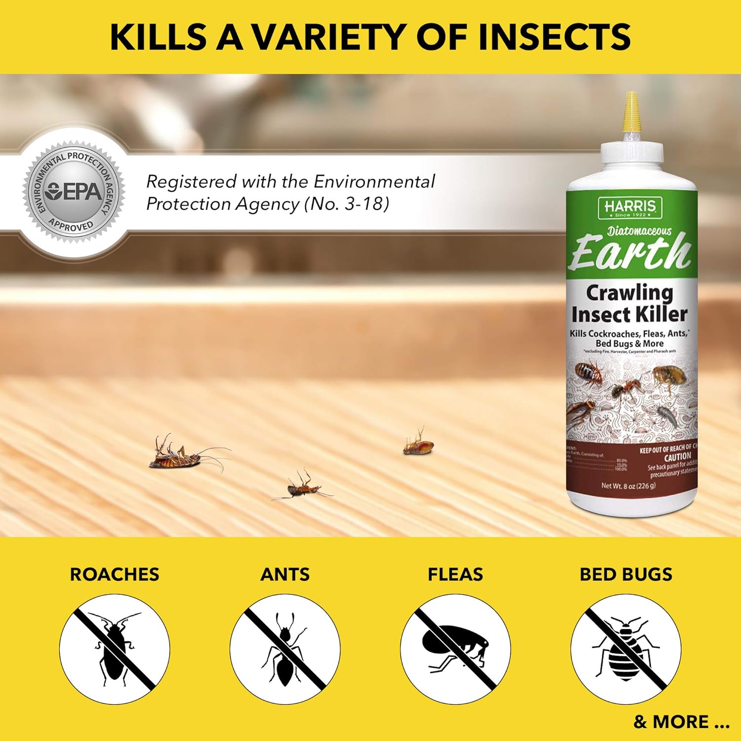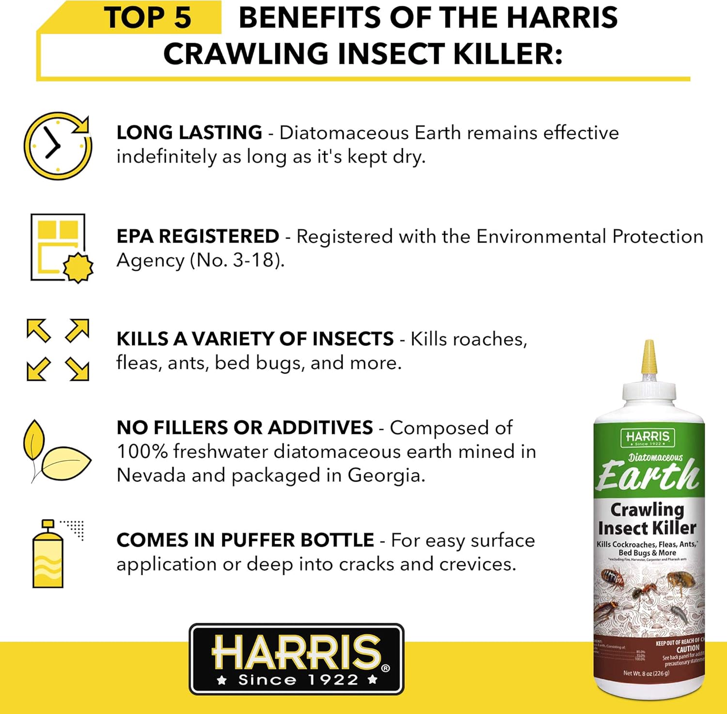Harris Diatomaceous Earth Crawling Insect Killer, 8oz for Roaches, Fleas, Ants, Bed Bugs, and More…