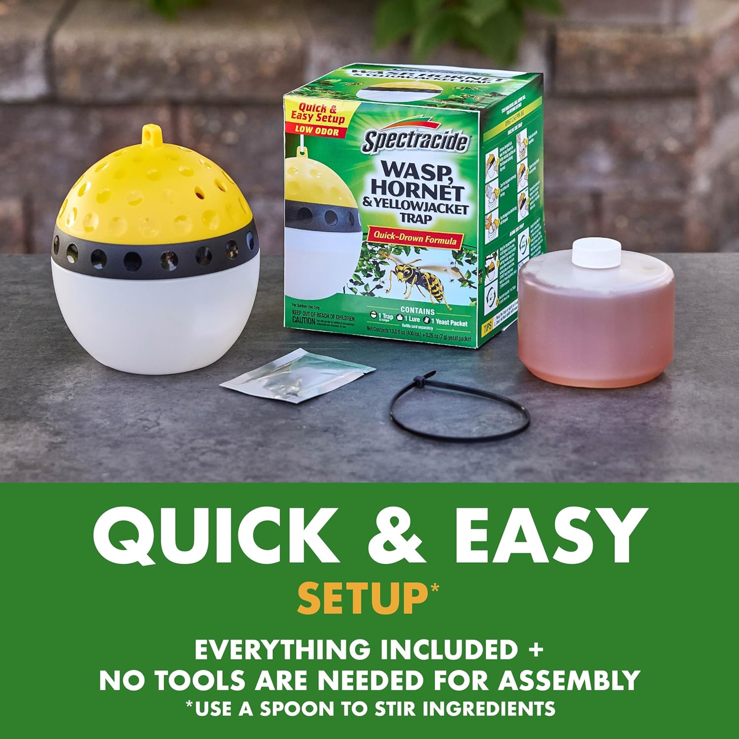 Spectracide Wasp, Hornet & Yellowjacket Trap, Hanging Wasp & Hornet Trap with a Quick-Drown Formula That Submerges & Kills Insects, 1 Count