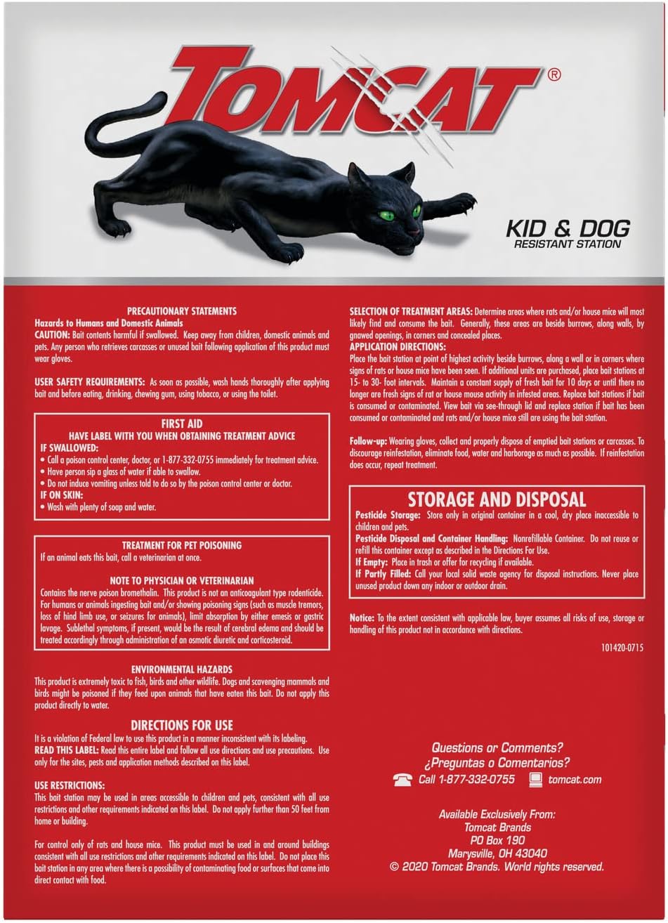 • Tomcat Rat & Mouse Killer Disposable Value Pack of 2 pre-filled, ready to use bait stations effectively kills rats and mice while protecting kids and dogs